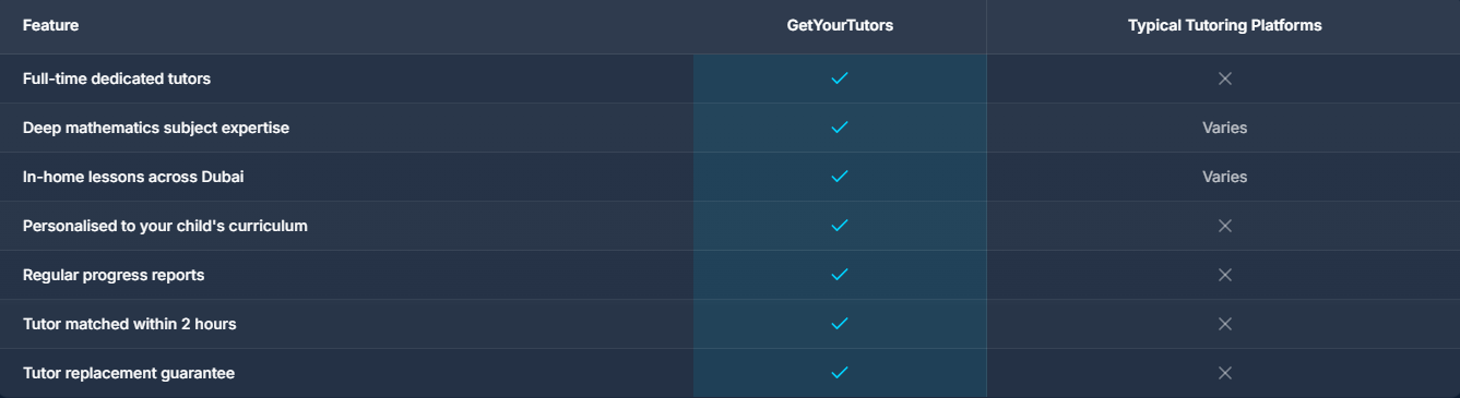 Our full-time mathematics tutors are experienced across all major curricula taught in Dubai schools: